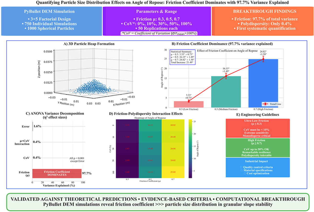 Full Length ArticleQuantifying the impact of particle size distribution variability on angle of repose measurement precision: A friction-dependent analysis using PyBullet physics simulationVolume 107, December 2025, Pages 157-165Abstract