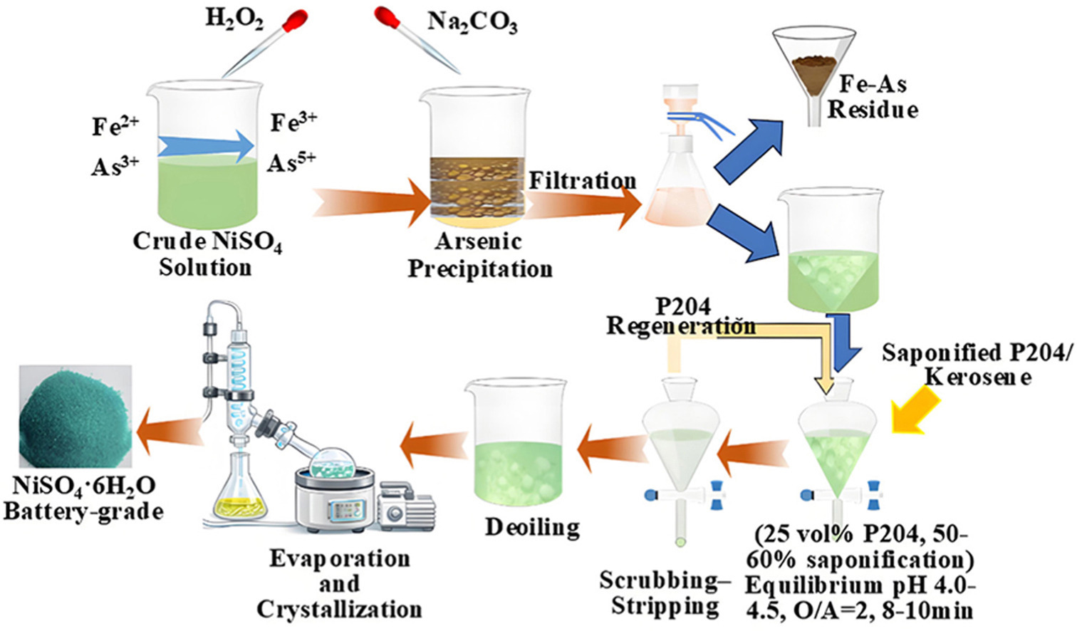 Full Length ArticleIn situ arsenic immobilization via oxidative co-precipitation and integrated P204-based impurity removal coupled with crystallization for the production of battery-grade NiSO4·6H2OVolume 112, May 2026, Pages 11-23Abstract
